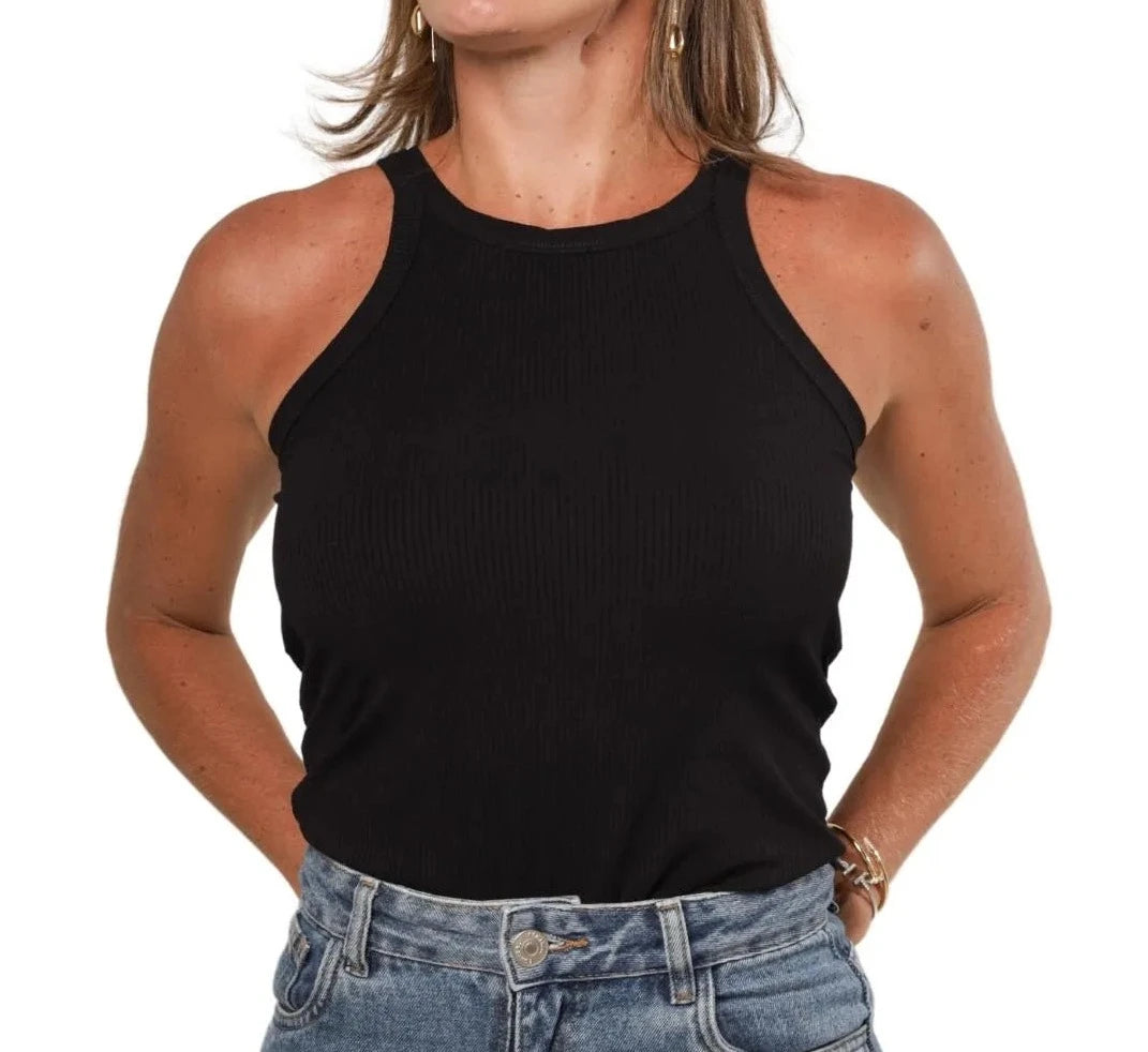 Blu Ribbed Tank Top, an essential piece with a racerback style for a modern and sporty look. Made from high quality fabric, it provides comfort and elegance for different benefits. Wear with jeans or shorts for a casual and elegant look at any time of the day.